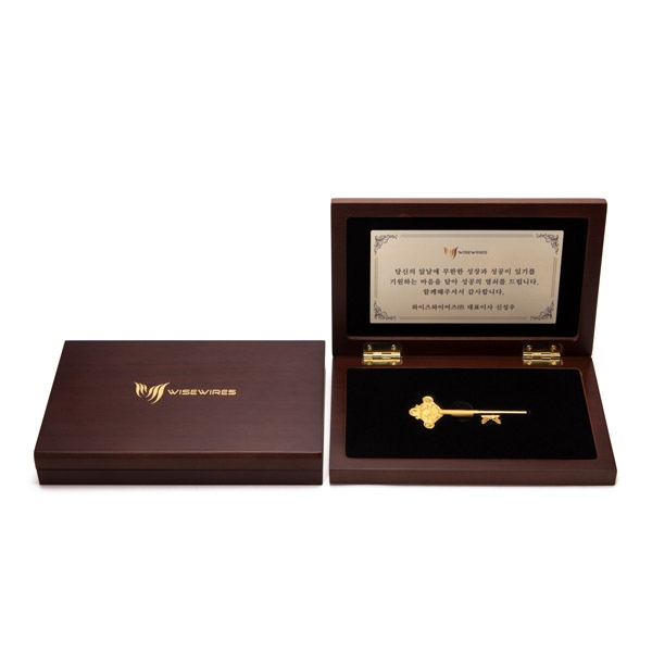 순금 열쇠와 고급 우드케이스에, 당신의 메시지를 새긴 맞춤 명판을 더해 특별한 선물을 완성하세요