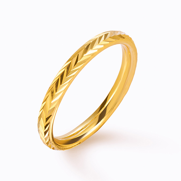 세련된 헤링본 무늬의 슬림한 순금 반지
